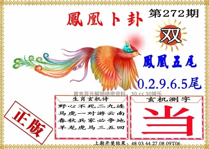 275期:大小单双句/另东方心经/凤凰马经